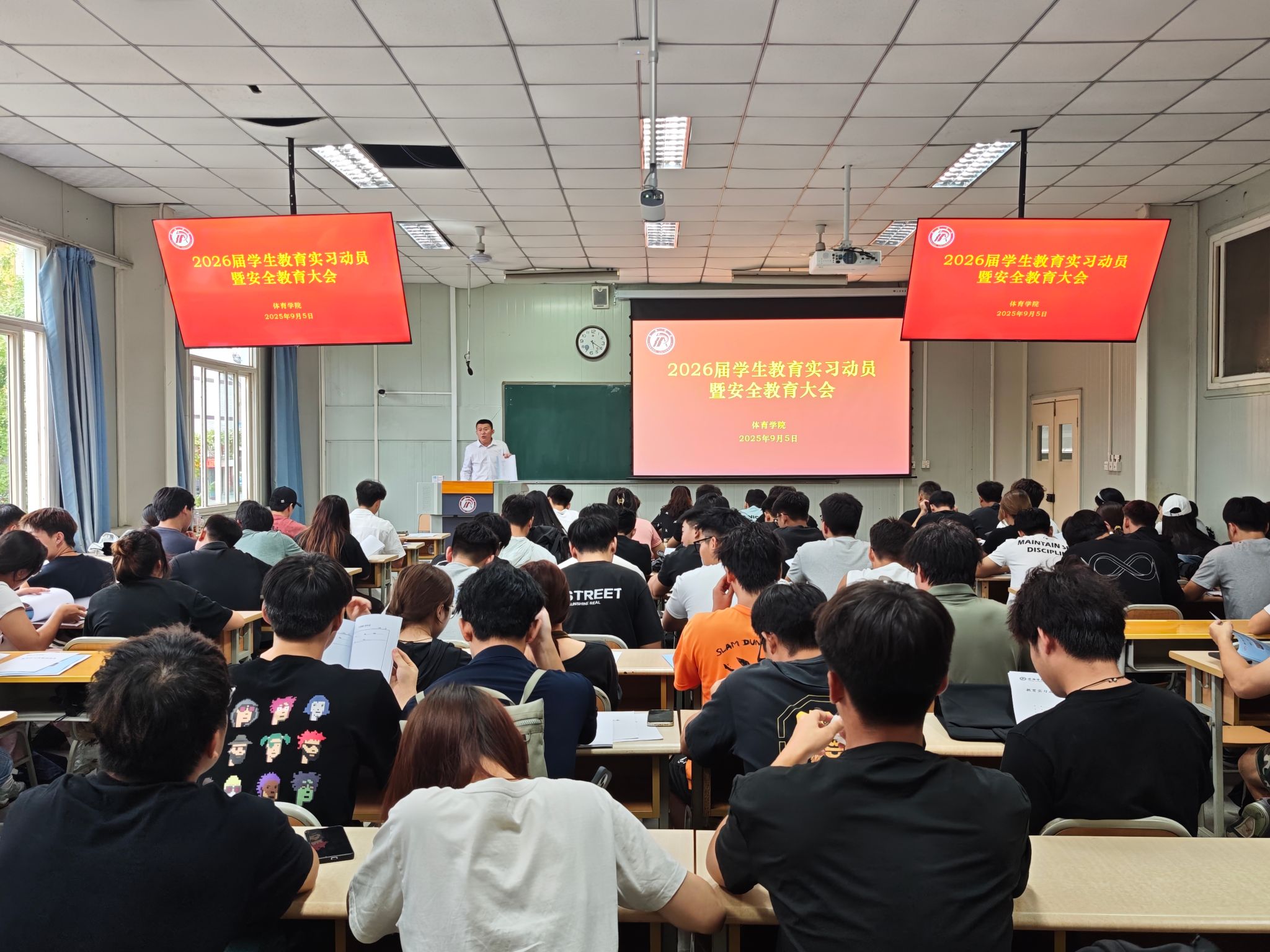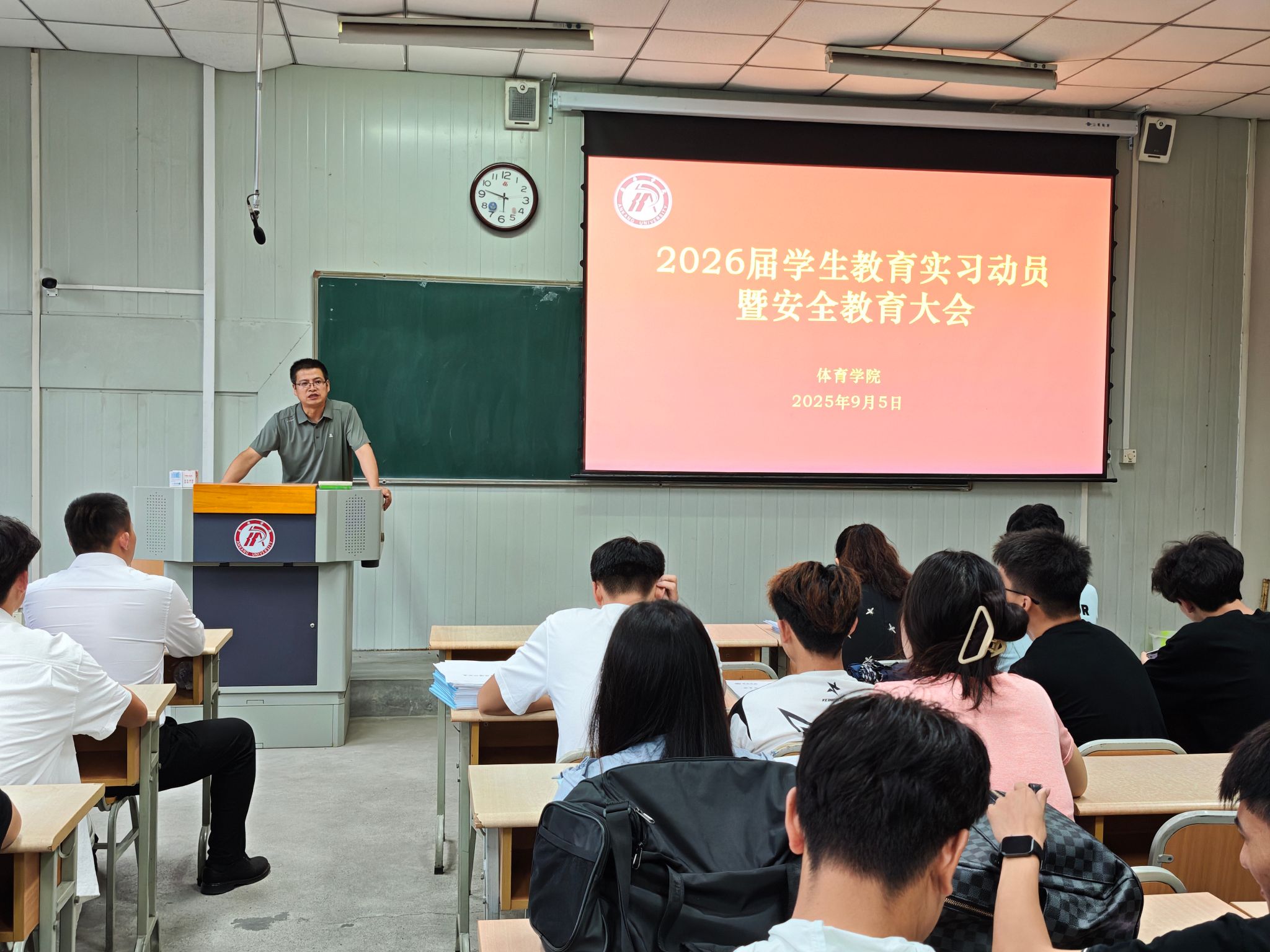 党总支书记韩晔在总结动员中强调,实习是落实立德树人根本任务的重要实践,是贯通理论学习与岗位实战的关键桥梁,更是学生锤炼专业本领、拓宽事业格局的战略起点。他勉励同学们把握时代机遇、勇担青年使命,以高质量实习成效服务社会需求,为实现人生价值与国家发展同频共振奠定坚实基础。同时向大家提出三点要求,一是要胸怀大局,勇担使命,要把个人成长融入时代发展,以实干展现体院人的担当;二是要知行合一,淬炼本领。要在实践中巩固专业所学,在岗位上锤炼真才实学;三是要严守纪律,安全为先。要时刻绷紧安全这根弦,严守规章、沉着应变,平安圆满完成实习。