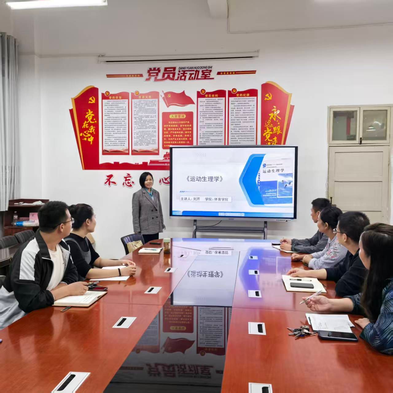 活动中,主讲教师以“理论与实验融合,赋能体育人才培养”为核心,从课程定位、教学目标、内容体系、教学方法、评价体系及改革方向六大维度进行系统阐述。在课程定位上,明确其作为体育专业基础课的作用,衔接后续体育保健学、健康教育学等课程;教学目标聚焦“知识传授、能力培养、价值引领”三维目标,强调让学生掌握生理机制的同时,提升实验操作与运动场景应用能力。
