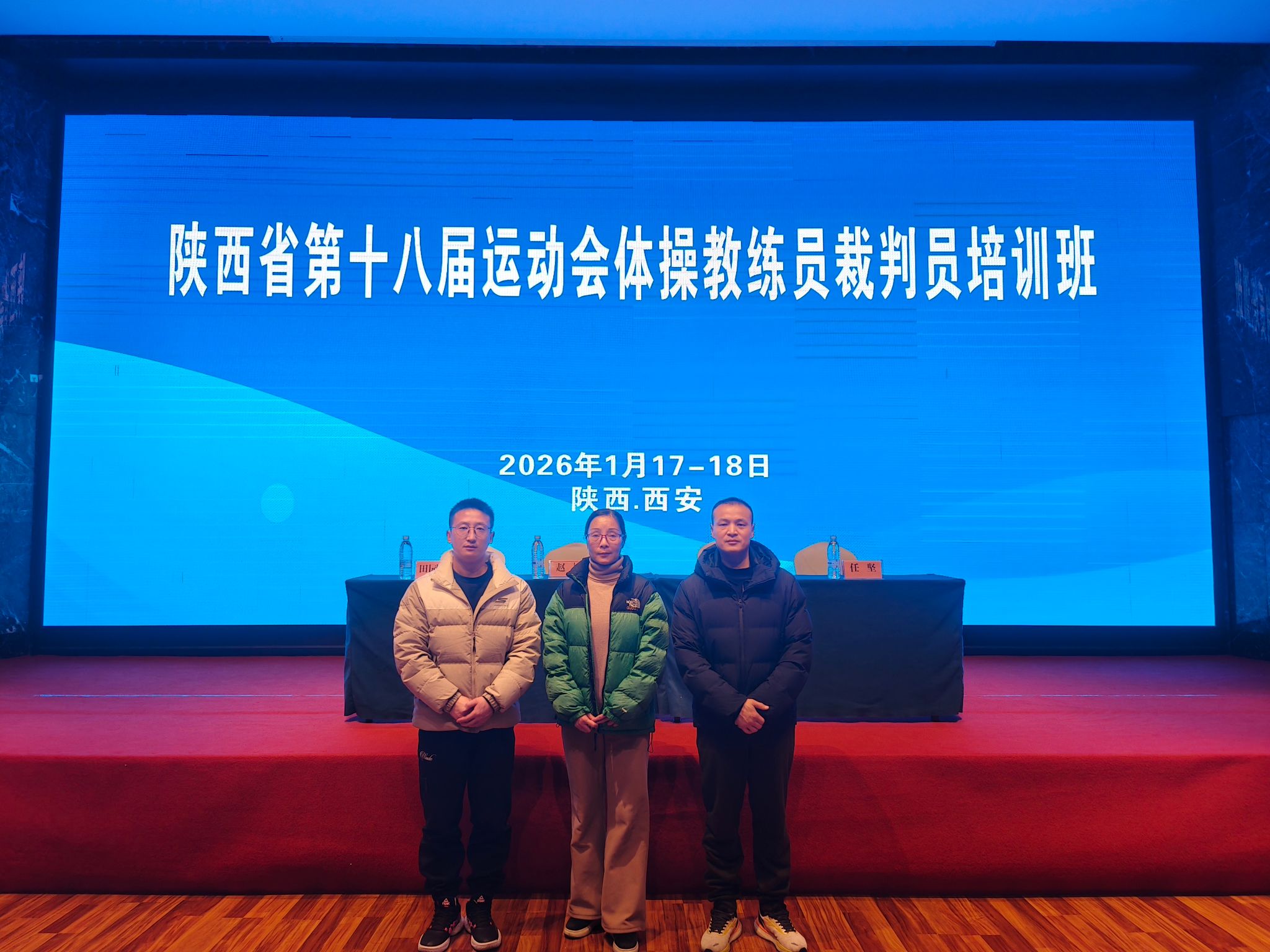 为提升体操教学与执裁专业水平,积极对接省运会竞赛标准,2026年1月17日--18日,bwin体操教师高召盈、王少峰、杨飞龙赴西安参加了由陕西省体操运动管理中心主办的陕西省第十八届运动会体操教练员裁判员培训班。