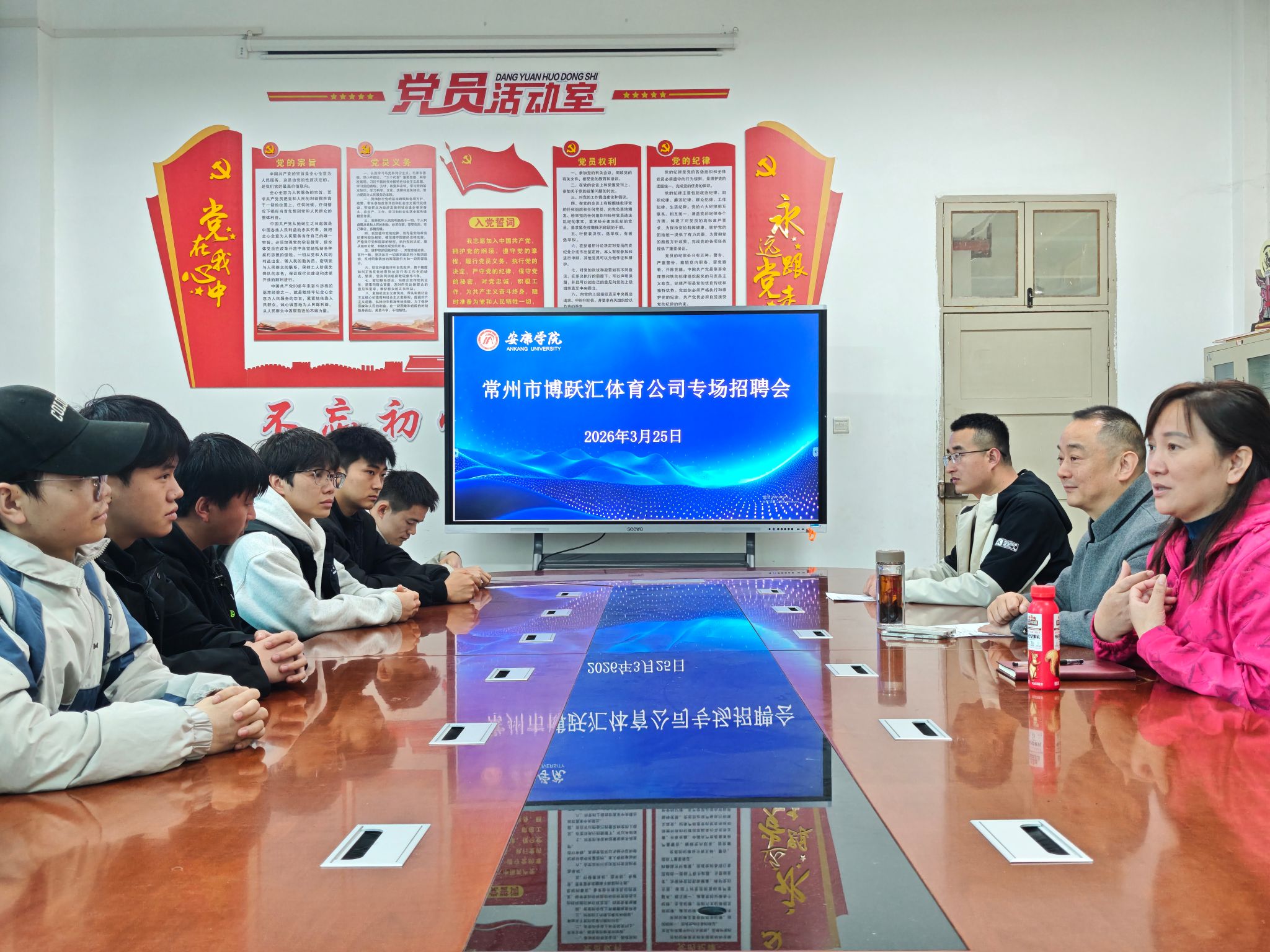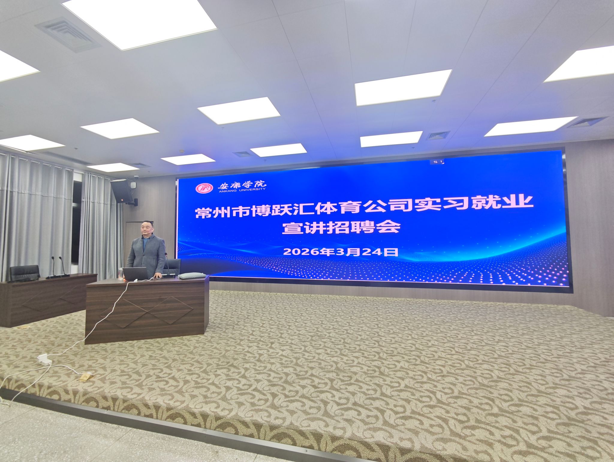 3月24日晚,常州博跃汇体育文化产业发展有限公司董事长巢旭、相关负责人黄明君一行莅临bwin,面向大三、大四年级学生举办实习就业专场宣讲会。bwin领导班子成员、全体辅导员和全体大三、大四同学共同参加了此次活动。